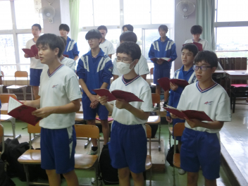 まずは、体育大会についてお褒めの言葉をいただき、続いて文化発表会ミッションをいただきました。