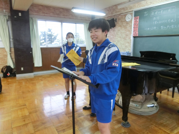 まずは、体育大会についてお褒めの言葉をいただき、続いて文化発表会ミッションをいただきました。