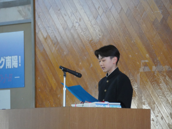生徒会長からの歓迎の言葉です。