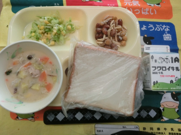 今日 は、収穫祭 の行事食 です。そして、だしを味 わう「和食 の日 」の献立 です。11月 23日 は「勤労感謝 の日 」ですが、昔 は「にいなめ祭 」とよばれ、稲 や作物 の豊 かな実 りを神様 に感謝 し、収穫 をお祝 いする日 でした。お祝 い事 には「赤飯 」は欠 かせない食 べ物 だったので、今日 は赤飯 を用意 しました。ごま塩 をかけていただきましょう。