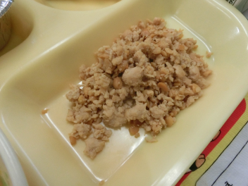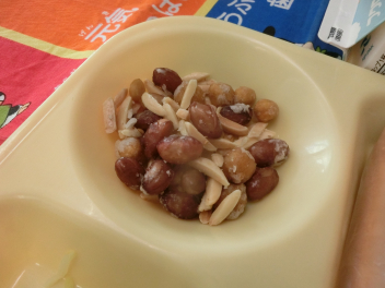 エネルギーになる食 べ物 は、大 きく分 けて「炭水化物 」と「脂質 」の2つがあります。今日 はその中 の「脂質 」について紹介 します。料理 で使 う油 や肉 の脂 のラードの他 に、今日 の給食 のフライビーンズに入 っているアーモンドや、その仲間 のごまやナッツ類 などにも、多 くの油 が含 まれています。脂質 には少量 でもたくさんのエネルギーがあるため、効率的 にエネルギーを補給 することができます。ただし、食 べ過 ぎると肥満 の原因 にもなるので、気 をつけましょう。