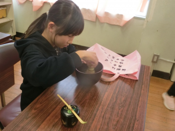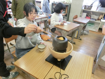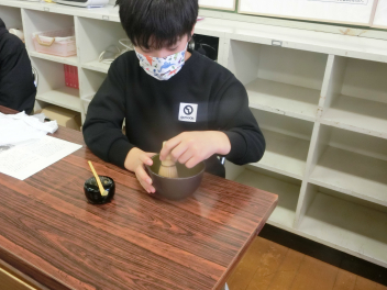 文化・室内遊び:お茶の作法を学んだり、お茶をたてて、お菓子をいただいたりしました。