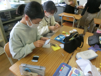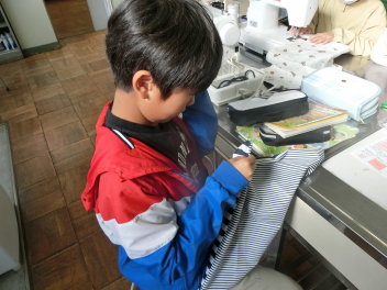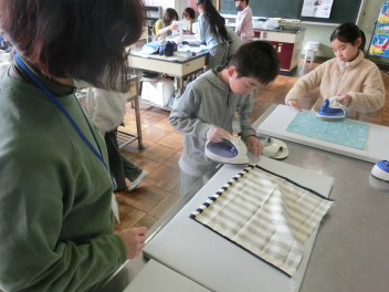 • 11月26日(水)5年生が、家庭科の授業で、「ミシンを使ってランチョンマットを作ろう」の学習をしていました。今日は、ランチョンマットを縫い終わった子もいて、最後の仕上げでアイロンがけをしている子もいました。ランチョンマットが出来上がって、とても喜んでいる児童が多くいました。また、この活動には多くの地域のボランティアの方に参加していただいています。ありがとうございます。
