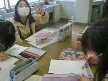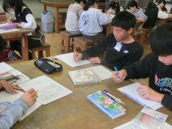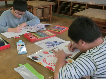 図工クラブ:自分の好きな絵に 色を塗り完成させていました。