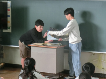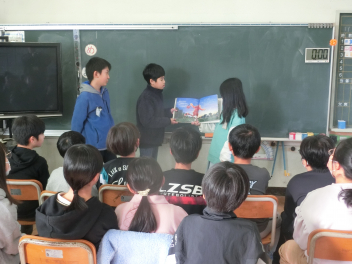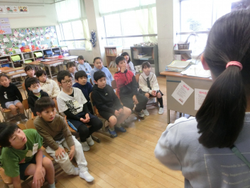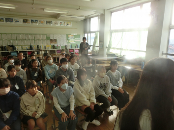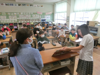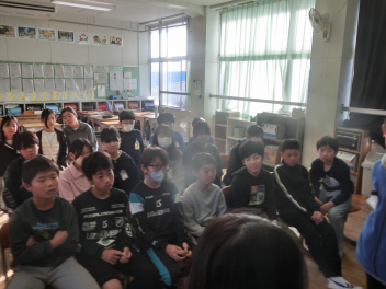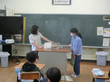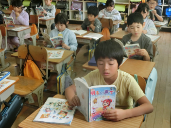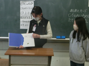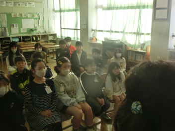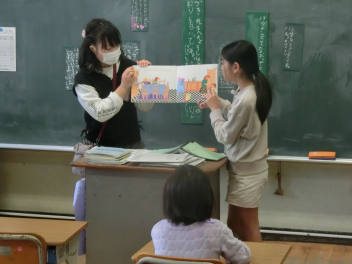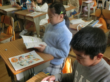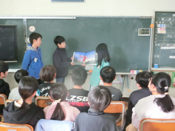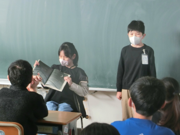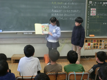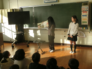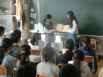 • 11月26日(水)朝活動の時間に、図書委員会の児童が、4・5・6年生の教室に行き、本の読み聞かせ活動が行われました。図書委員会の児童は、どんな本をどんな風に読むかを企画し、今日を迎えました。とても上手に読んでいました。