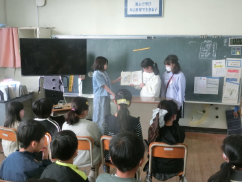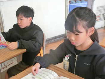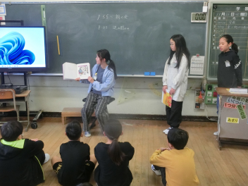 • 11月25日(火)今週は読書週間で、図書委員会がいろいろな活動をする予定です。今日は、朝の活動の時間に、1年生から3年生の教室に、図書委員会の児童が行き、読み聞かせをしました。委員会の児童は、多少緊張していましたが、とても上手に本を読んでいました。