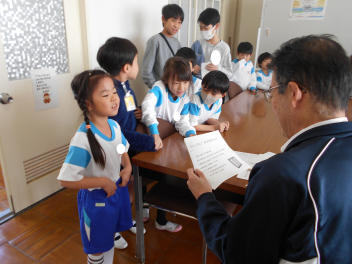 11月に入って、子供たちは、校長室での暗唱のチャレンジしています。今日は、6年生が、宮沢賢治の「雨にもまけず」に挑戦していました。また1年生が、「じゅげむ」の暗唱に挑戦していました。校長先生の前で、少し緊張ぎみな子もいましたが、合格する子が多くいました。すばらしいと思いました。