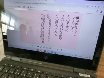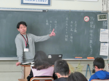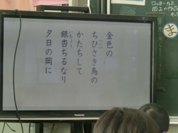 • 12月2日(火)4年生が、国語科「短歌・俳句に親しもう」の授業で、有名な作者の短歌や俳句に親しみました。