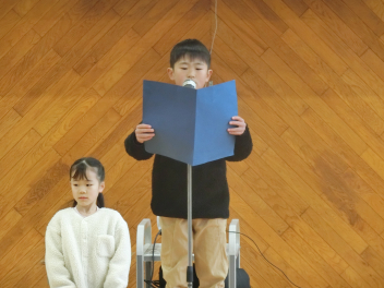 代表児童が、2学期頑張ったこと、これからの目標などを伝えました。