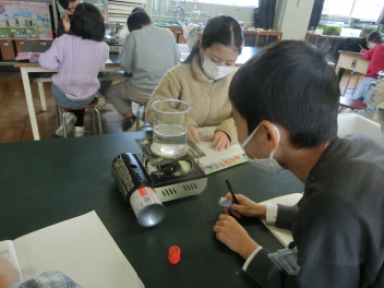 断熱材やカーテンの効果について学んでいました。