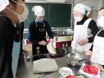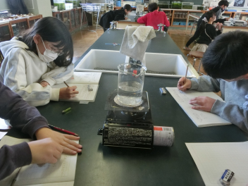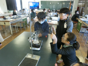 2月4日(水)5年生が、家庭科「暖かい住まい方で快適に」の単元で、浜松市地球温暖化防止活動センターから講師を招き講座を受けました。「冬の寒い季節を暖かく過ごすために、屋内屋外において暖かい場所、寒い場所をしることや、日中住まいに日射を取り入れ、夜間保温する方法などを実験を通して学ぶ」ことを目的にして活動しました。講師の先生が用意してくださった家の模型に温度計が取り付けられた実験装置に ライトを当てて家の中に温度変化を測りました。