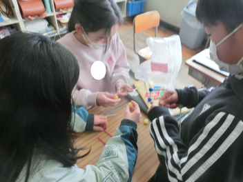• 2月9日(月)4年生が、理科「すがたをかえる水」の授業で、ふっとうする水から出てくる「あわ」の正体を調べていました。ビーカーの中にロートを入れてあわを集めるようにして、その上にビニール袋をつけました。さて 「あわ」の正体は・・・