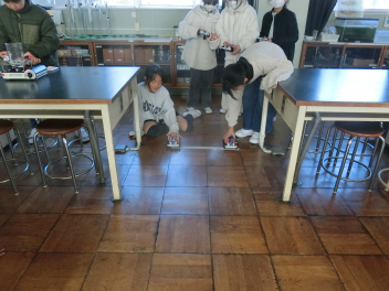 • 2月12日(木)5年生が、理科「電磁石の性質」の単元で、電磁石の性質を学習しました。電磁石の性質を利用して「モーター」が回ることも学習し、モーターカーを作りました。今日は作ったモーターカーをみんなで楽しそうに走らせていました。