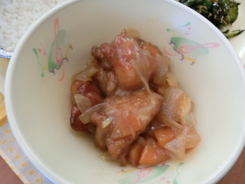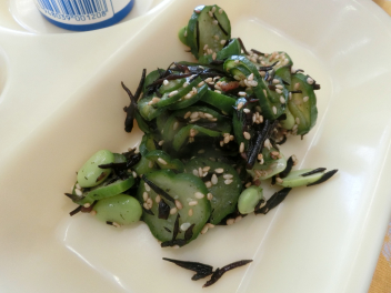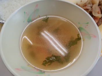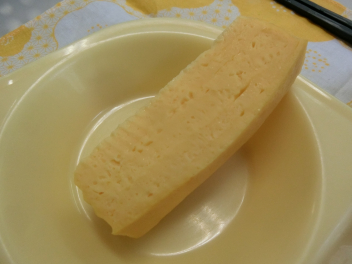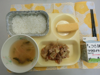 今日 の給食 の主菜 は厚焼 き卵 、副菜 は肉 じゃが、汁物 は沢煮 わんで、「一汁二菜 」()の献立 になっています。ご飯 と汁物 に2種類 のおかずがある食事 を [一汁二菜]といい、日本 の伝統的 な食事 のスタイルです。いろいろな食材 をとることができるので 、栄養 バランスのよい献立  になります。健康的  な生活 をおくるために、さまざまな料理 を組 み合 わせて食 べるようにしましょう。