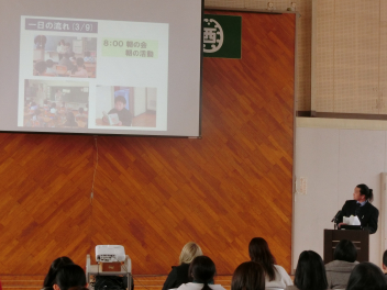 現在1年学年主任による「小学校生活の概要と入学までの心構え」についての話がありました。
