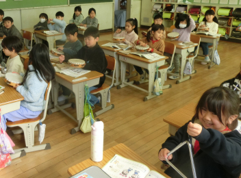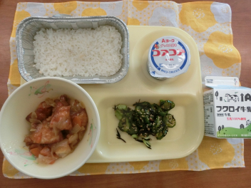 丈夫 な骨 や歯 を作 るためには、カルシウムをしっかりとることが大切 です。そのため、給  食 には毎日牛  乳 が出 ています。牛  乳 は、カルシウムをたくさん含 んでいる上 に、体  の中 への吸  収 もよいため、手軽 にカルシウムをとることができます。今日 のデザートは、牛乳 から作 られるヨーグルトです。給食 では多 くのカルシウムをとることができますね。