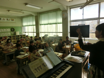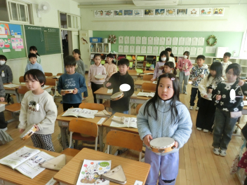 • 2月18日(水)1年生が、音楽科の授業で「とんくるりん ぱんくるりん」の歌を歌ったり、トライアングルやタンバリンの演奏をしたりしていました。みんなで役割を決めて、楽しそうに演奏していました。