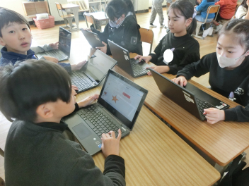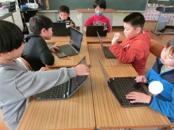 • 2月24日(火)3年生が、総合的な学習の時間「大好きはままつ」の授業で、浜松について調べたことをグループごとに発表していました。オートバイ・ピアノ・うなぎ・うなぎパイ・みかんなど浜松には、全国に誇れるものがいくつもあります。それを調べて、クロムブックのプレゼンテーションソフトでまとめて、みんなに伝えていました。プレゼンテーションを工夫して作成している子が多くいて、感心しました。