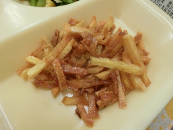 だいこんは、一年 を通 して店先 に並 んでいますが、本来 は秋 の終 わり頃 から冬 にかけてが旬 の野菜 です。夏 のだいこんは、かたくて辛 みがあるため、「だいこんおろし」にむいていますが、冬 のだいこんは甘 みが多 くてやわらかいため、いろいろな料理 に使 ってもおいしくいただくことができます。今日 はみなさんに人気 の麻婆 だいこんを作 りました。だいこんの甘 みを感 じながら、おいしくいただきました。