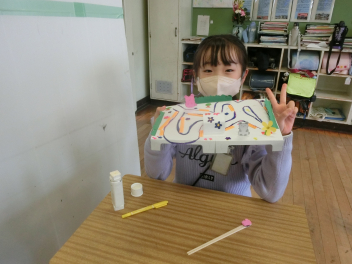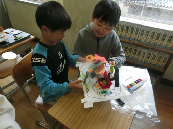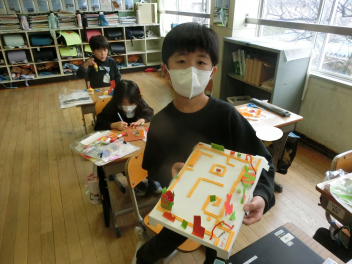• 2月25日(水)3年生が、図画工作科「マグネットマジック」の学習で、自分で車やキャラクターを走らせるコースを作っていました。完成した児童は、マグネットで操作する車を走らせて、楽しんでいました。