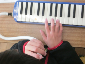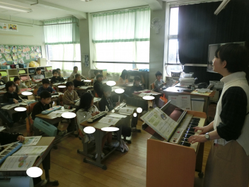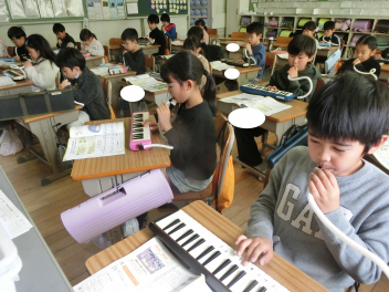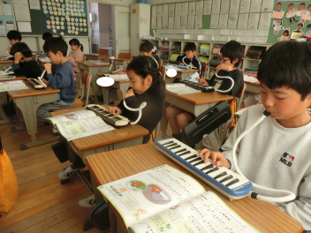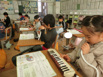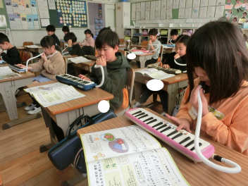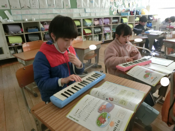 • 2月26日(木)2年生が、音楽科の授業で「こぐまの2月」の曲を、鍵盤ハーモニカで演奏していました。