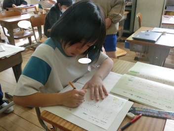 • 2月26日(木)2年生が、書写の硬筆の1年間のまとめとして、丁寧に清書用紙に書いていました。姿勢よく、気持ちを込めて書いていました。もうすぐ3年生、成長を感じました。