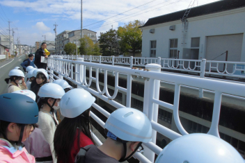 • 2月26日(木)4年生が、社会科「自然災害からくらしを守る」の一環として、どんぶらっこ公園の地下調整池の見学をしました。地域の防災について学びました。ボランティアの保護者の協力も得て、安全に見学することができました。講師をしていただいた職員に、いろいろ説明していただきました。講師の職員の方々・ボランティアのみなさん ありがとうございました。