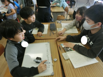 「ものの燃え方」の単元で、まず「燃えることで知っていること・もっと調べてみたいこと」をグループで考えていました。