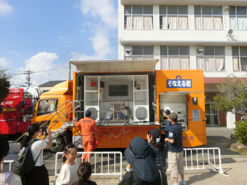 9月27日(土)午後から 西小防災体験教室実行委員会主催の「防災体験教室」が行われました。浜松市消防局中消防署鴨江出張所・浜松市中央区振興課・大学産業株式会社の協力を受けて、【起震車体験】・【煙避難体験】・【AED救急講習体験】・【段ボールベッド体験】・【プール浄水器デモンストレーション】などが行われました。児童・保護者役100名が参加して、貴重な体験や講和を聞くことができました。今後の生活に生かしていければよいと感じました。