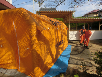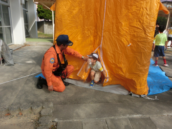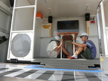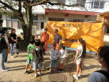 9月27日(土)午後から 西小防災体験教室実行委員会主催の「防災体験教室」が行われました。浜松市消防局中消防署鴨江出張所・浜松市中央区振興課・大学産業株式会社の協力を受けて、【起震車体験】・【煙避難体験】・【AED救急講習体験】・【段ボールベッド体験】・【プール浄水器デモンストレーション】などが行われました。児童・保護者役100名が参加して、貴重な体験や講和を聞くことができました。今後の生活に生かしていければよいと感じました。
