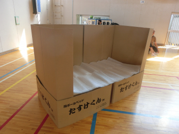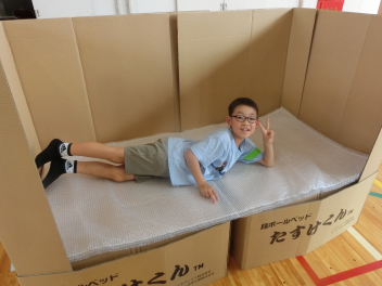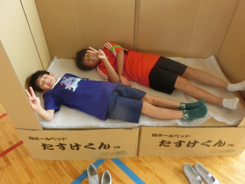 【段ボールベッド組み立て体験】子供たちは「寝心地は よかった」と言っていました。