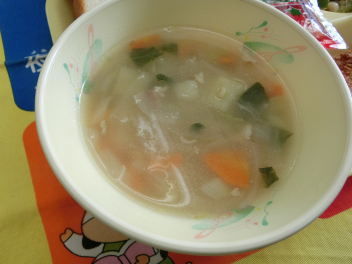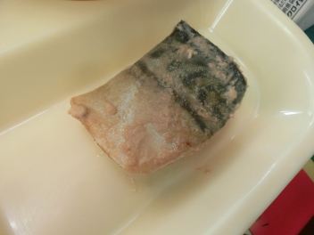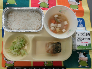 さばには、脳 の働 きを活発 にすると言 われているDHA(デイーエイチエー)が含 まれています。また、体 をつくるもとになるたんぱく質 や、体 の中 でエネルギーを作 るときに必要 なビタミンB2、貧血 の予防 に役立 つ鉄分 など、みなさんの成長 に欠 かせない栄養 が多 く含 まれています。今日 は給食室 の大 きなお釜 で、さばをじっくり煮 ました。みそを入 れて煮 ることでさばの身 を柔 らかくし、おいしく食 べることができます。