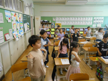 10月20日(月)5年生が、昼休み教室でけんだま遊びをしていました。「うまく玉をのせたときが気持ちいい」と言っていました。みんなで楽しそうに活動していました。