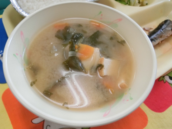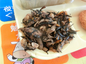 秋刀魚 は漢字 で秋 の刀 の魚 と書 くように、秋 においしく、刀 のような形 をした魚 です。今日 はかぼすと砂糖・しょうゆ・みりん・塩 などの調味料 で、骨 まで柔 らかくなるまでじっくりと煮 ました。かぼすをかけることでさわやかな風味 になります。旬 のおいしい食 べ物 を味 わいましょう。