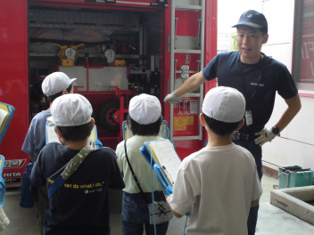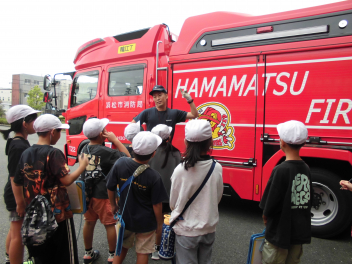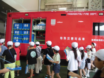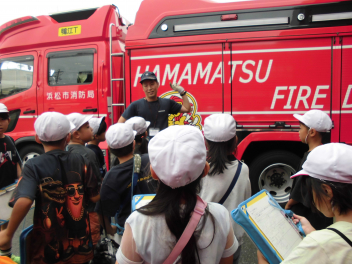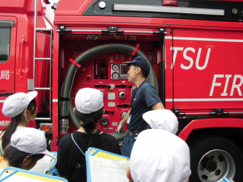 • 10月16日(木)3年生が、中消防署鴨江出張所へ「スクール119」の校外学習へ行ってきました。消防署内の見学をしたり、消防自動車やポンプ車などの説明を聞いたりしました。今後の社会の学習に生かしていく予定です。