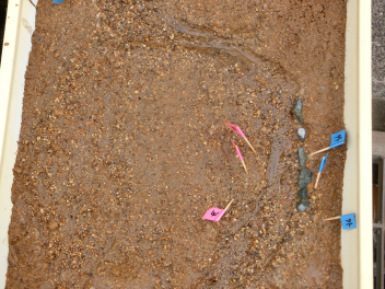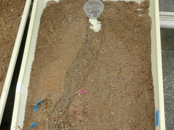一度に多くの水を流すとこのようになりました。「土がけずられるはたらき(しん食)」