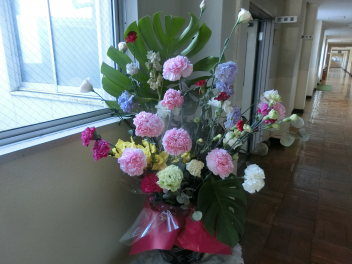 職員室前の廊下にきれいな花が飾られています。来校の際 ご覧ください。