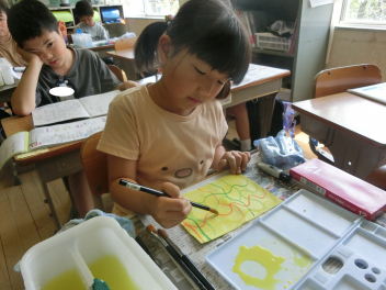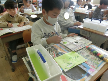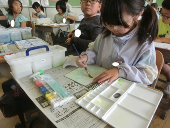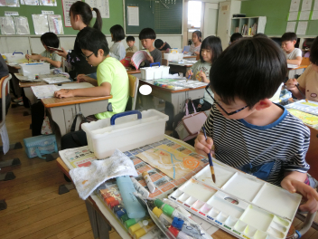 • 4月20日(月)3年生が、図画工作科の授業で「絵具の使い方」「パレットの使い方」「ふでの使い方」などの学習をしていました。実際に画用紙にいろいろなぬり方や絵具の筆の使い方などの練習をしていました。これからの図画工作科の学習などに生かしていく予定です。