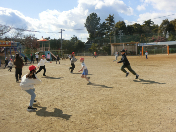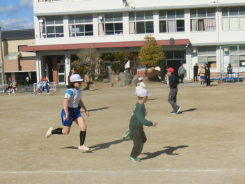1月30日(金)昼休み、6年生の主催による「ハンターからにげろ」イベントが行われました。このイベントを1・2年生は、朝からとても楽しみにしていました。今日は。1・2年生が、「10分間にげきろう!」に挑戦しました。6年生のハンターが、1・2年生をつかまえにいきました。しばらくすると、特別ハンターが登場して、1・2年生をつかまえにいきました。さて・・・にげきれた人はいたでしょうか?