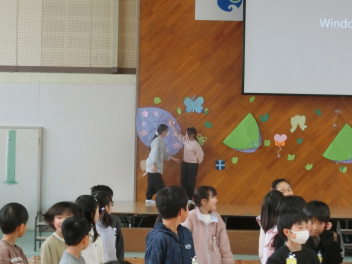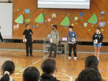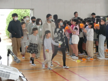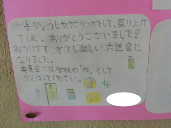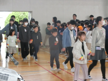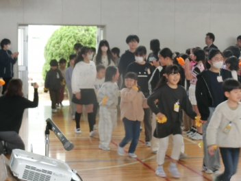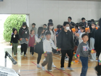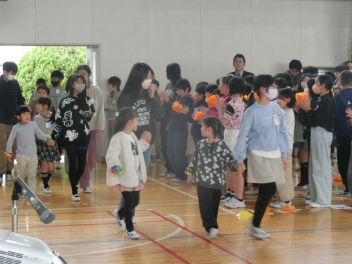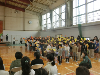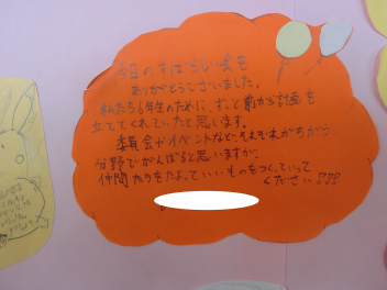 1年生から4年生のパフォーマンスをほめていただきました。また、全体の企画・運営・プレゼント作り・掲示物作りなど5年生のがんばりもほめていただきました。