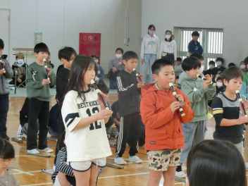おじいさん「最後にみんなで うの花を咲かせよう」「せーの」1年から4年生「うたをとどけよう」すると 「うの花が咲きました。」そして、「ありがとうの花」の全校合唱をしました。