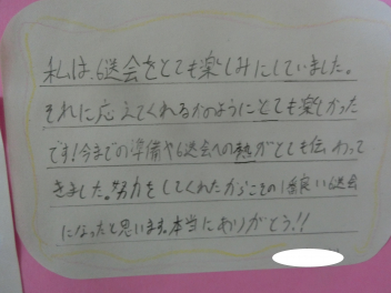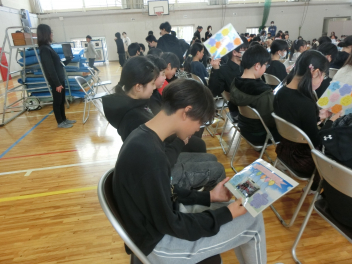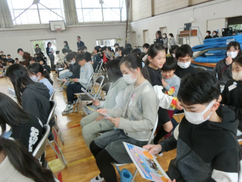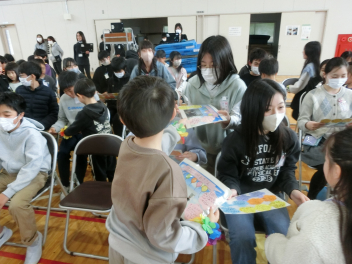 6年生は、たてわりグループごとのメッセージを夢中になって読んでいました。「ありがとう」の気持ちが伝わったようでした。