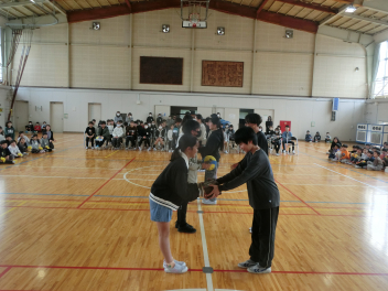 そして 6年生の各委員会の委員長と5年生の委員長が 向かい合い 引継ぎ式が行われました。
