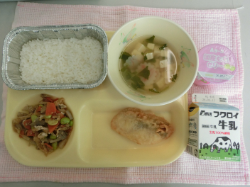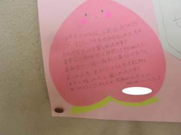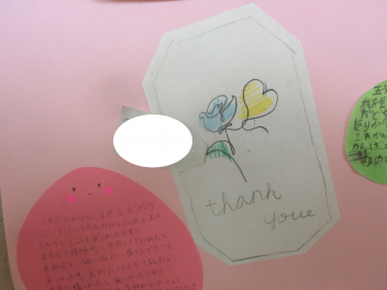 そして、たてわり班のグループごとに作成した「メッセージカード」をペアの1年生から、6年生へプレゼントしました。6年生ととても喜んでいました。