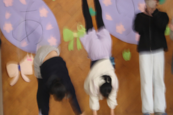 おじいさん「1年生のみなさん おじいさんと一緒に との花を咲かせよう」「せーの」1年生「とっても優しい6年生」すると「と」の花が咲きました。