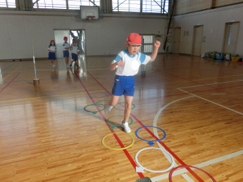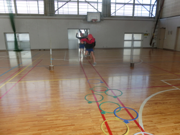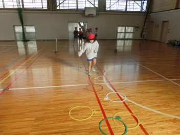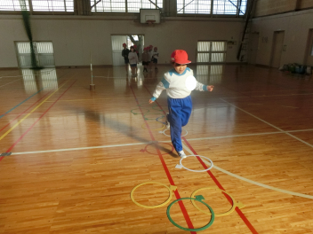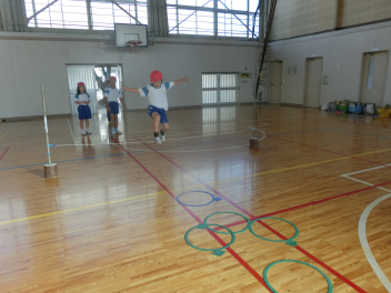 • 12月10日(水)2年生が、体育科の授業で、いろいろな運動の基礎となる動き作りをしていました。ボールをバスケットリングにシュートしたり、遠くまで投げてキャッチしたりしていました。また、走る跳ぶの動き作りで、ケンケンパーやゴム跳びなどをしていました。