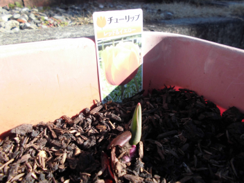 チューリップが芽を出しています!