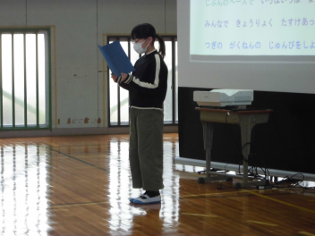 児童代表の言葉。大きな声で発表しました。
