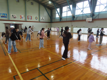 体を少し動かした後に、校歌を3番まで元気よく歌いました。
