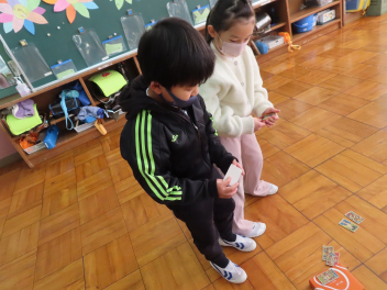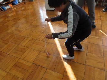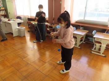 「やったあ。はじめてだるま落としが全部できたよ。」「けん玉、上手になったよ。見て見て。」など、うれしそうに子供たちは話をしていました。